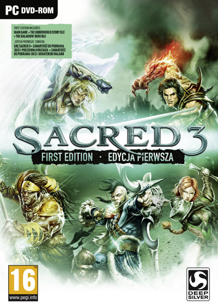 Premierowe wydanie gry Sacred 3 będzie dostępne w limitowanej, Pierwszej Edycji na wszystkie platformy. Edycja ta będzie zawierać klasę postaci Malakhim oraz fabularny dodatek, pt. „Podziemia”, w którym gracze będą mieli za zadanie przebić się na szczyt tajemniczej wieży, w której zmierzą się z Czarną Serafią, przeciwnikiem znanym z Sacred 2.